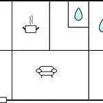 Hay una cocina completa con una nevera, así como instalaciones para comer en la habitación, como servicio de tetera/cafetera.